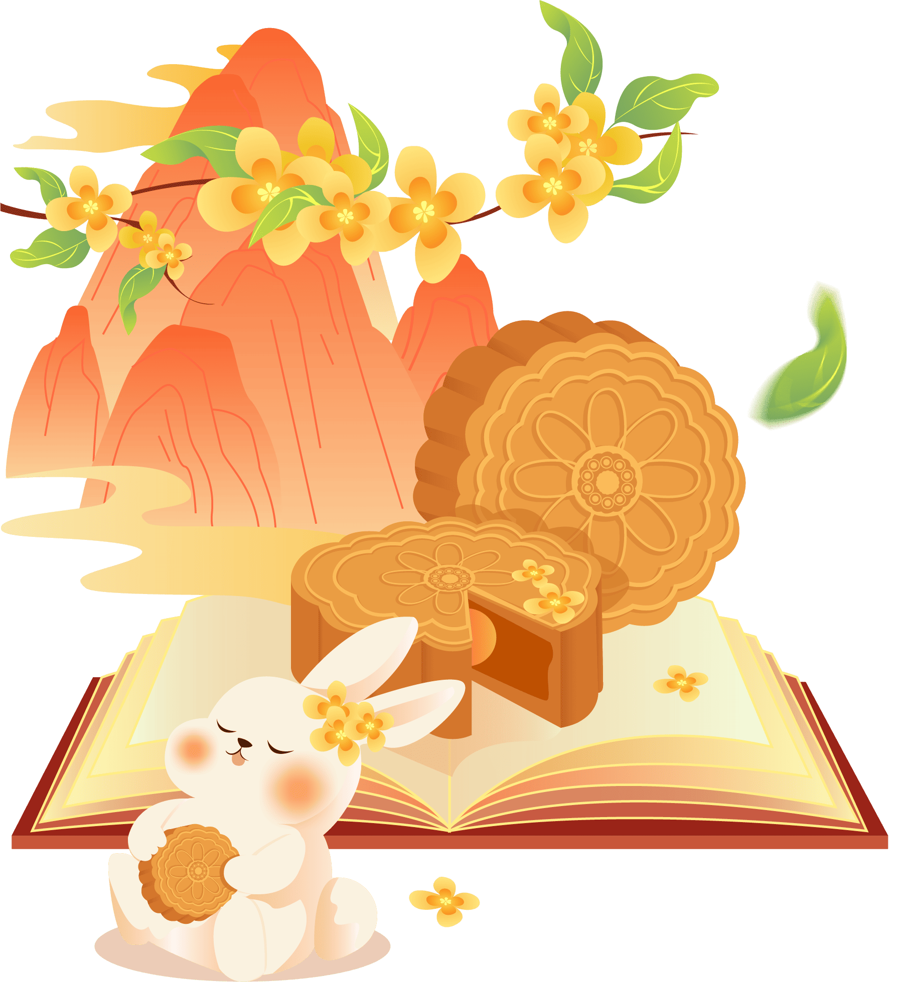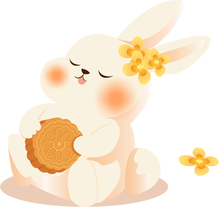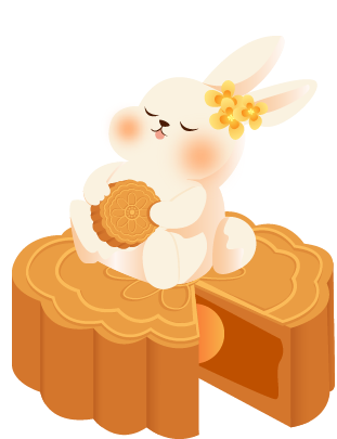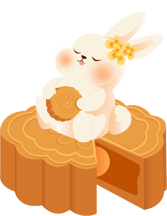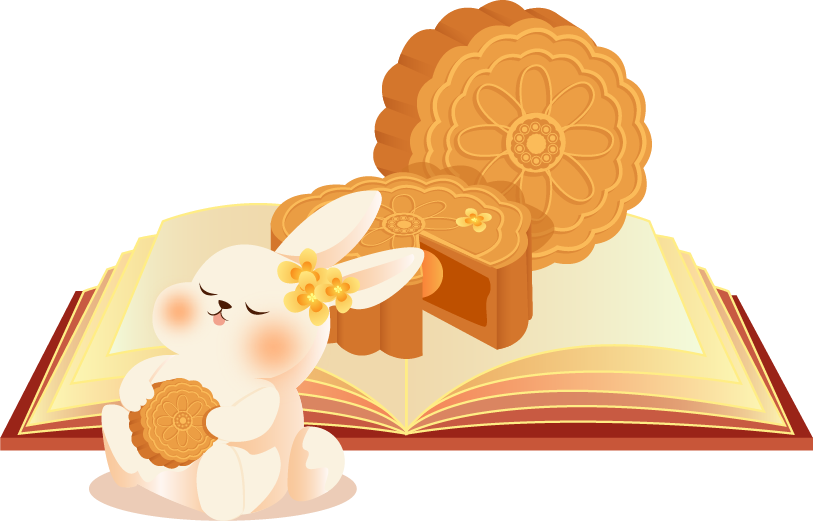 vip1通用风 中秋节 月亮远山孔明灯桂花书本月饼兔子 兔子在书本前满意的吃着月饼模板
