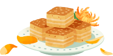据史料记载,重阳糕又称花糕、菊糕、五色糕,制无定法,较为随意。九月九日天明时,以片糕搭儿女头额,口中念念有词,祝愿子女百事俱高,乃古人九月作糕的本意。讲究的重阳糕要作成九层,像座宝塔,上面还做成两只小羊,以符合重阳(羊)之义。有的还在重阳糕上插一小红纸旗(代替茱萸),并点蜡烛灯。这大概是用“点灯”、“吃糕”代替“登高”的意思。