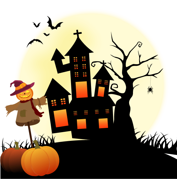 vip1卡通风 万圣节前夜 蜘蛛网 城堡树枝剪影 南瓜灯模板