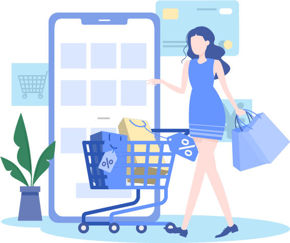 vip1商务风诚信315国际消费者权益日女生推着购物车购物模板