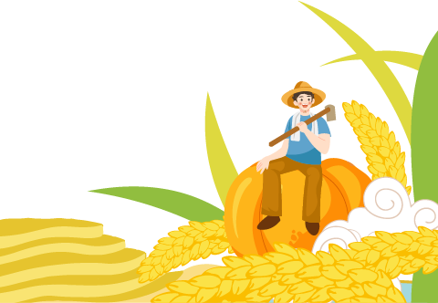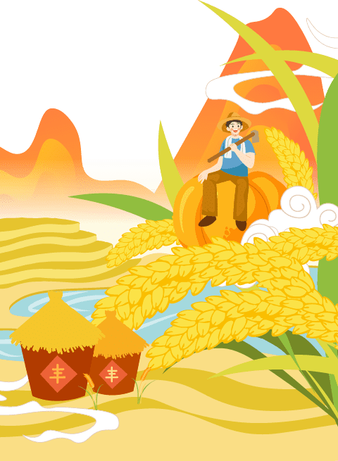 vip1夸张文艺风格中国农民丰收节农民扛着锄头坐在南瓜上模板