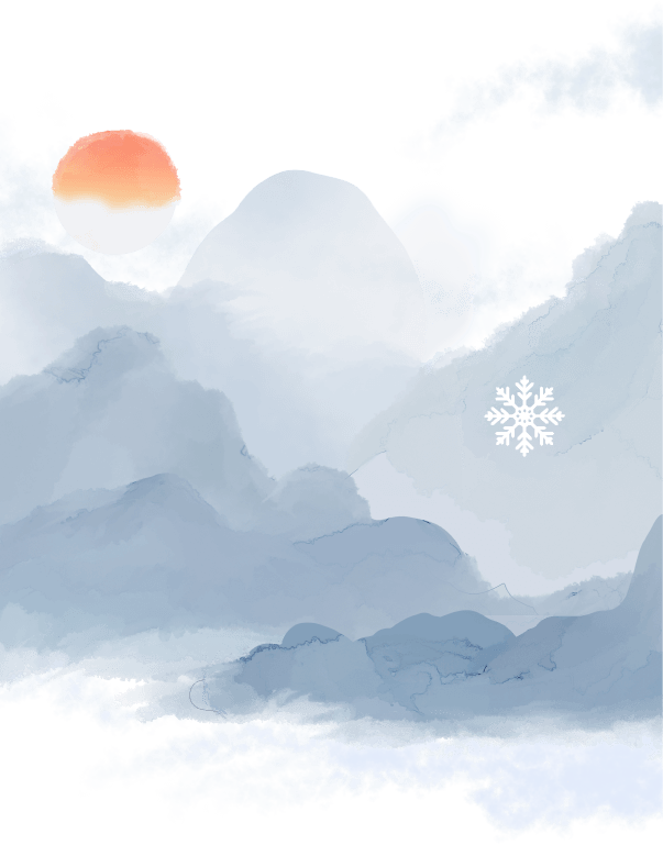 企鹅编辑器提供《水墨风 立冬 树枝远山太阳雪花模板》公众号模板,模板ID:38256 ,适用于微信公众号排版设计,本样式设计中包含了 节日 立冬 24节气 养生 二十四节气 冬季 白雪 雪山 水墨 插画 山水 传统文化 落雪 硕果 枝条 雪花 落日 冷色 等设计风格。