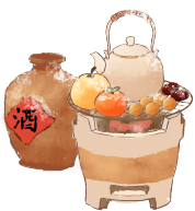 vip1古风立冬传统二十四节气柿子树远山饺子酒壶杯子筷子围炉煮酒煮茶水果模板