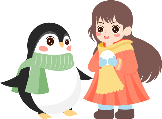 vip1卡通可爱风降温-寒潮预警雪地里的企鹅和女孩模板