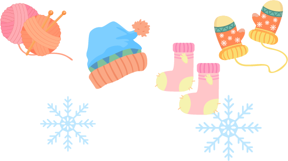 vip1卡通风 冬季降温安全提醒 毛线团雪花针织帽袜子手套模板